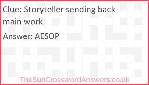 Storyteller sending back main work is a crossword clue for which we have 1 possible answer and we have spotted 2 times in our database. This crossword clue was last seen on 25 May 2025 in The Sun Cryptic Crossword puzzle!