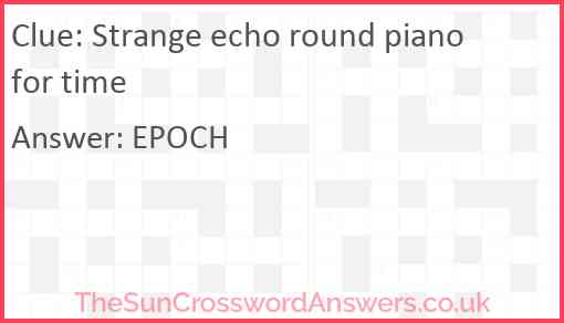 Strange echo round piano for time is a crossword clue for which we have 1 possible answer and we have spotted 2 times in our database. This crossword clue was last seen on 21 November 2024 in The Sun Cryptic Crossword puzzle!