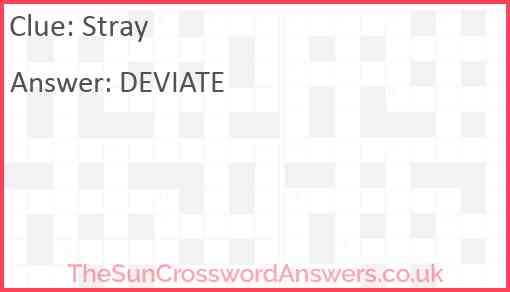 Stray is a crossword clue for which we have 1 possible answer and we have spotted 1 times in our database. This crossword clue was last seen on 16 January 2025 in The Sun Coffee Time Crossword puzzle!