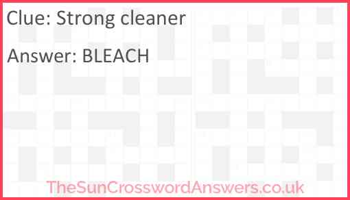 Strong cleaner is a crossword clue for which we have 1 possible answer and we have spotted 4 times in our database. This crossword clue was last seen on 18 September 2024 in The Sun Coffee Time Crossword puzzle!