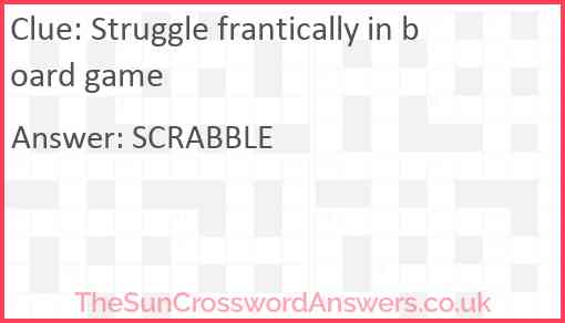 Struggle frantically in board game is a crossword clue for which we have 1 possible answer and we have spotted 2 times in our database. This crossword clue was last seen on 21 June 2024 in The Sun Cryptic Crossword puzzle!