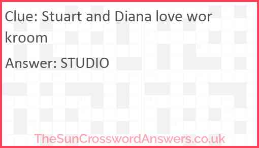 Stuart and Diana love workroom is a crossword clue for which we have 1 possible answer and we have spotted 3 times in our database. This crossword clue was last seen on 11 January 2025 in The Sun Cryptic Crossword puzzle!
