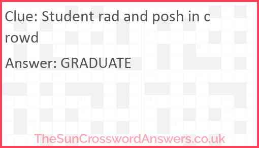 Student rad and posh in crowd is a crossword clue for which we have 1 possible answer and we have spotted 2 times in our database. This crossword clue was last seen on 24 January 2023 in The Sun Cryptic Crossword puzzle!