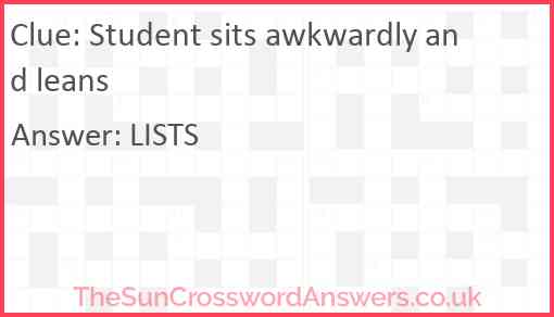 Student sits awkwardly and leans is a crossword clue for which we have 1 possible answer and we have spotted 3 times in our database. This crossword clue was last seen on 05 June 2025 in The Sun Cryptic Crossword puzzle!