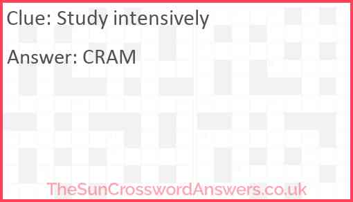 Study intensively is a crossword clue for which we have 1 possible answer and we have spotted 2 times in our database. This crossword clue was last seen on 26 December 2021 in The Sun Coffee Time Crossword puzzle!