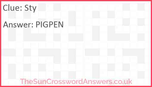 Sty is a crossword clue for which we have 1 possible answer and we have spotted 2 times in our database. This crossword clue was last seen on 23 August 2023 in The Sun Coffee Time Crossword puzzle!