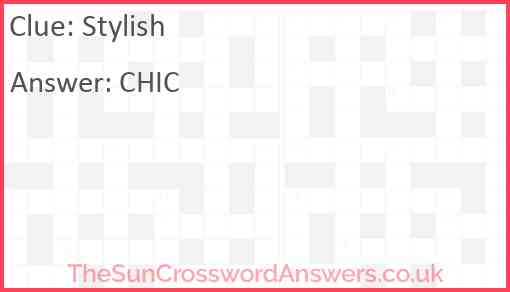 Stylish is a crossword clue for which we have 2 possible answer and we have spotted 3 times in our database. This crossword clue was last seen on 14 March 2025 in The Sun Coffee Time Crossword puzzle!