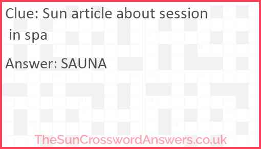 Sun article about session in spa is a crossword clue for which we have 1 possible answer and we have spotted 1 times in our database. This crossword clue was last seen on 05 April 2024 in The Sun Cryptic Crossword puzzle!