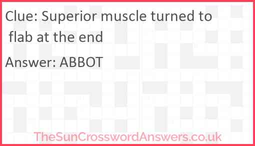 Superior muscle turned to flab at the end is a crossword clue for which we have 1 possible answer and we have spotted 4 times in our database. This crossword clue was last seen on 13 July 2023 in The Sun Cryptic Crossword puzzle!