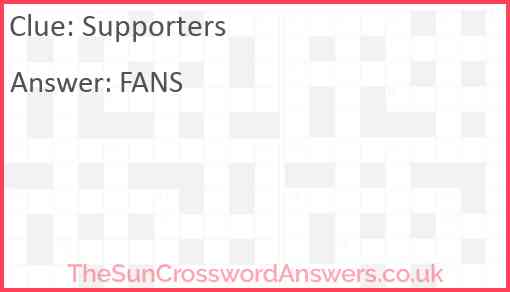 Supporters is a crossword clue for which we have 1 possible answer and we have spotted 1 times in our database. This crossword clue was last seen on 26 December 2018 in The Sun Coffee Time Crossword puzzle!