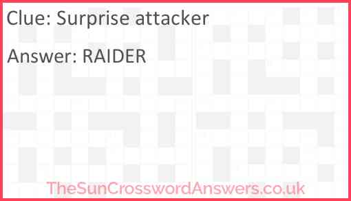 Surprise attacker is a crossword clue for which we have 1 possible answer and we have spotted 3 times in our database. This crossword clue was last seen on 23 April 2024 in The Sun Coffee Time Crossword puzzle!