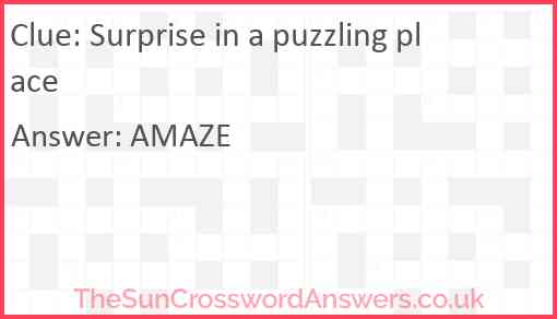 Surprise in a puzzling place is a crossword clue for which we have 1 possible answer and we have spotted 2 times in our database. This crossword clue was last seen on 04 November 2024 in The Sun Cryptic Crossword puzzle!