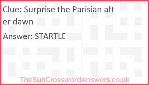 Surprise the Parisian after dawn is a crossword clue for which we have 1 possible answer and we have spotted 2 times in our database. This crossword clue was last seen on 26 September 2024 in The Sun Cryptic Crossword puzzle!