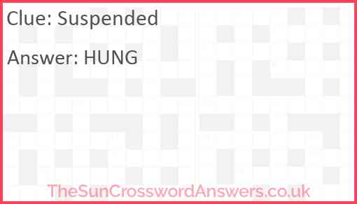 Suspended is a crossword clue for which we have 1 possible answer and we have spotted 1 times in our database. This crossword clue was last seen on 23 September 2022 in The Sun Coffee Time Crossword puzzle!