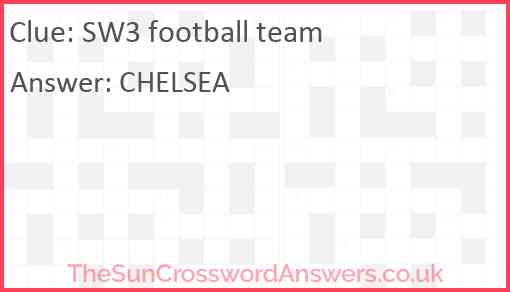 SW3 football team is a crossword clue for which we have 1 possible answer and we have spotted 1 times in our database. This crossword clue was last seen on 05 April 2022 in The Sun Coffee Time Crossword puzzle!