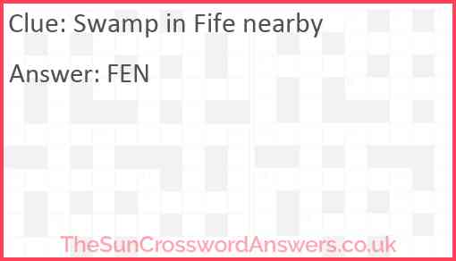 Swamp in Fife nearby is a crossword clue for which we have 1 possible answer and we have spotted 1 times in our database. This crossword clue was last seen on 01 February 2020 in The Sun Cryptic Crossword puzzle!