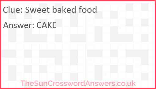 Sweet baked food is a crossword clue for which we have 1 possible answer and we have spotted 3 times in our database. This crossword clue was last seen on 07 January 2023 in The Sun Coffee Time Crossword puzzle!