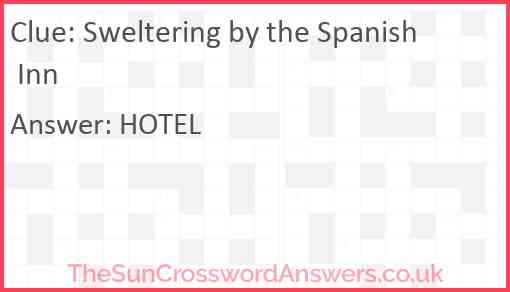 Sweltering by the Spanish Inn is a crossword clue for which we have 1 possible answer and we have spotted 3 times in our database. This crossword clue was last seen on 18 November 2024 in The Sun Cryptic Crossword puzzle!