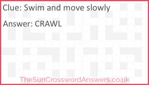 Swim and move slowly is a crossword clue for which we have 1 possible answer and we have spotted 3 times in our database. This crossword clue was last seen on 25 June 2024 in The Sun Cryptic Crossword puzzle!