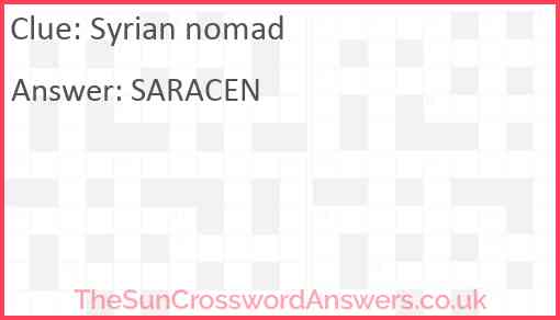 Syrian nomad is a crossword clue for which we have 1 possible answer and we have spotted 2 times in our database. This crossword clue was last seen on 06 December 2022 in The Sun Coffee Time Crossword puzzle!