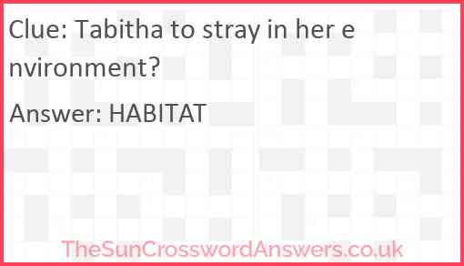Tabitha to stray in her environment? is a crossword clue for which we have 1 possible answer and we have spotted 3 times in our database. This crossword clue was last seen on 06 July 2023 in The Sun Cryptic Crossword puzzle!
