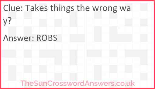 Takes things the wrong way? is a crossword clue for which we have 1 possible answer and we have spotted 1 times in our database. This crossword clue was last seen on 01 March 2024 in The Sun Cryptic Crossword puzzle!