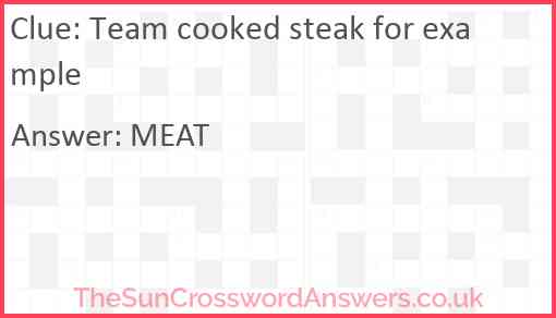 Team cooked steak for example is a crossword clue for which we have 1 possible answer and we have spotted 3 times in our database. This crossword clue was last seen on 09 June 2025 in The Sun Cryptic Crossword puzzle!