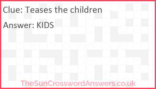 Teases the children is a crossword clue for which we have 1 possible answer and we have spotted 1 times in our database. This crossword clue was last seen on 22 June 2020 in The Sun Cryptic Crossword puzzle!
