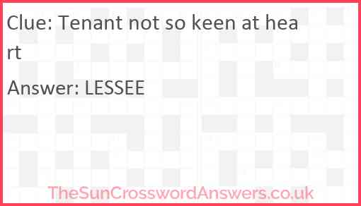 Tenant not so keen at heart is a crossword clue for which we have 1 possible answer and we have spotted 5 times in our database. This crossword clue was last seen on 19 June 2025 in The Sun Cryptic Crossword puzzle!