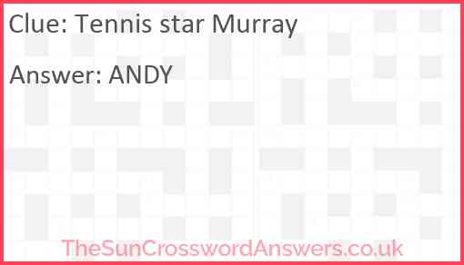 Tennis star Murray is a crossword clue for which we have 1 possible answer and we have spotted 1 times in our database. This crossword clue was last seen on 31 July 2023 in The Sun Coffee Time Crossword puzzle!