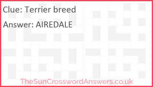 Terrier breed is a crossword clue for which we have 1 possible answer and we have spotted 2 times in our database. This crossword clue was last seen on 23 December 2023 in The Sun Coffee Time Crossword puzzle!