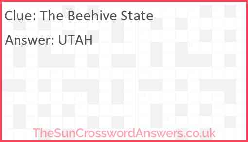 The Beehive State is a crossword clue for which we have 1 possible answer and we have spotted 1 times in our database. This crossword clue was last seen on 08 January 2020 in The Sun Coffee Time Crossword puzzle!