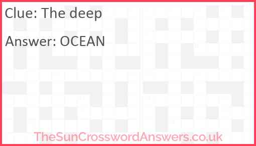 The deep is a crossword clue for which we have 1 possible answer and we have spotted 6 times in our database. This crossword clue was last seen on 10 October 2023 in The Sun Coffee Time Crossword puzzle!