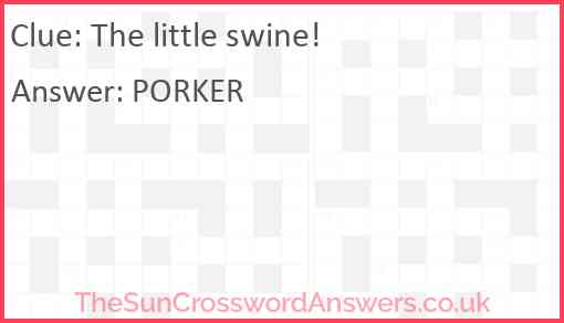 The little swine! is a crossword clue for which we have 1 possible answer and we have spotted 1 times in our database. This crossword clue was last seen on 31 May 2023 in The Sun Cryptic Crossword puzzle!