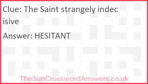 The Saint strangely indecisive is a crossword clue for which we have 1 possible answer and we have spotted 1 times in our database. This crossword clue was last seen on 23 March 2024 in The Sun Cryptic Crossword puzzle!