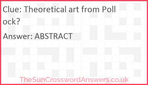 Theoretical art from Pollock? is a crossword clue for which we have 1 possible answer and we have spotted 3 times in our database. This crossword clue was last seen on 22 December 2024 in The Sun Cryptic Crossword puzzle!