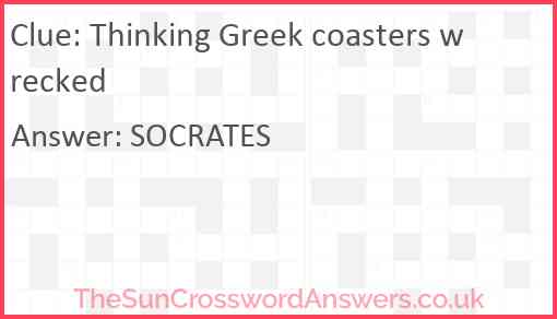 Thinking Greek coasters wrecked is a crossword clue for which we have 1 possible answer and we have spotted 2 times in our database. This crossword clue was last seen on 23 April 2023 in The Sun Cryptic Crossword puzzle!