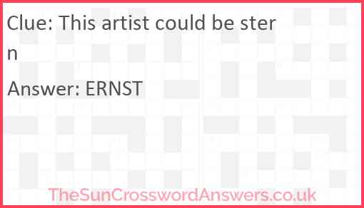 This artist could be stern is a crossword clue for which we have 1 possible answer and we have spotted 2 times in our database. This crossword clue was last seen on 20 April 2023 in The Sun Cryptic Crossword puzzle!