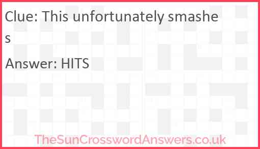 This unfortunately smashes is a crossword clue for which we have 1 possible answer and we have spotted 1 times in our database. This crossword clue was last seen on 15 November 2022 in The Sun Cryptic Crossword puzzle!