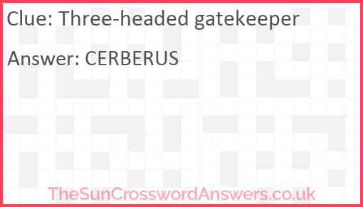 Three-headed gatekeeper is a crossword clue for which we have 1 possible answer and we have spotted 1 times in our database. This crossword clue was last seen on 28 November 2022 in The Sun Coffee Time Crossword puzzle!