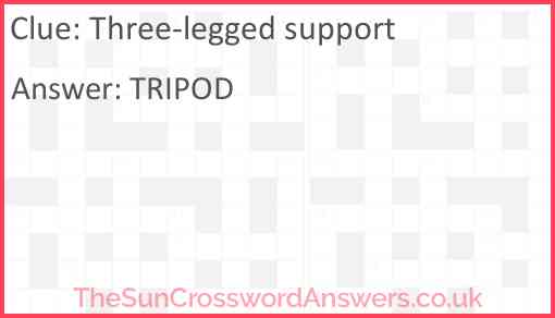 Three-legged support is a crossword clue for which we have 1 possible answer and we have spotted 6 times in our database. This crossword clue was last seen on 24 May 2025 in The Sun Coffee Time Crossword puzzle!
