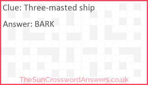 Three-masted ship is a crossword clue for which we have 2 possible answer and we have spotted 4 times in our database. This crossword clue was last seen on 15 October 2023 in The Sun Coffee Time Crossword puzzle!