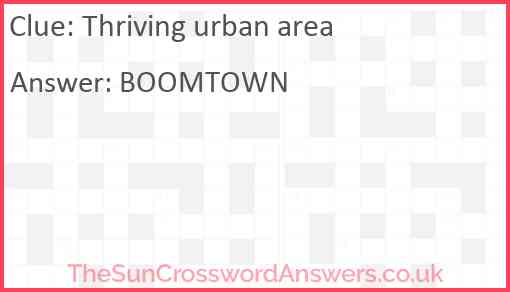 Thriving urban area is a crossword clue for which we have 1 possible answer and we have spotted 2 times in our database. This crossword clue was last seen on 26 May 2021 in The Sun Coffee Time Crossword puzzle!