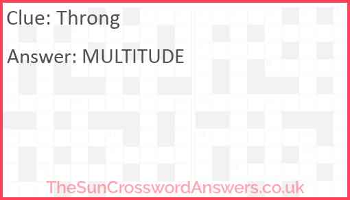 Throng is a crossword clue for which we have 1 possible answer and we have spotted 2 times in our database. This crossword clue was last seen on 27 October 2022 in The Sun Coffee Time Crossword puzzle!