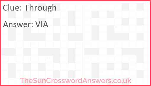 Through is a crossword clue for which we have 1 possible answer and we have spotted 2 times in our database. This crossword clue was last seen on 22 November 2020 in The Sun Coffee Time Crossword puzzle!