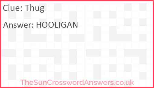 Thug is a crossword clue for which we have 1 possible answer and we have spotted 7 times in our database. This crossword clue was last seen on 30 December 2024 in The Sun Coffee Time Crossword puzzle!