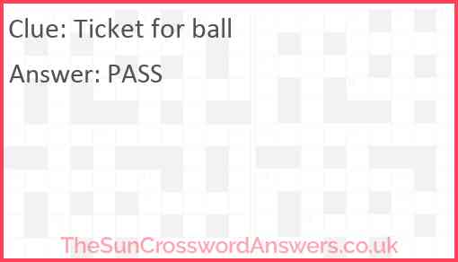 Ticket for ball is a crossword clue for which we have 1 possible answer and we have spotted 4 times in our database. This crossword clue was last seen on 20 December 2024 in The Sun Cryptic Crossword puzzle!