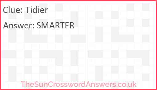Tidier is a crossword clue for which we have 2 possible answer and we have spotted 8 times in our database. This crossword clue was last seen on 14 May 2024 in The Sun Coffee Time Crossword puzzle!