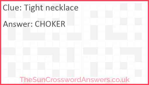 Tight necklace is a crossword clue for which we have 1 possible answer and we have spotted 1 times in our database. This crossword clue was last seen on 23 March 2019 in The Sun Coffee Time Crossword puzzle!