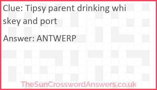 Tipsy parent drinking whiskey and port is a crossword clue for which we have 1 possible answer and we have spotted 1 times in our database. This crossword clue was last seen on 13 October 2022 in The Sun Cryptic Crossword puzzle!